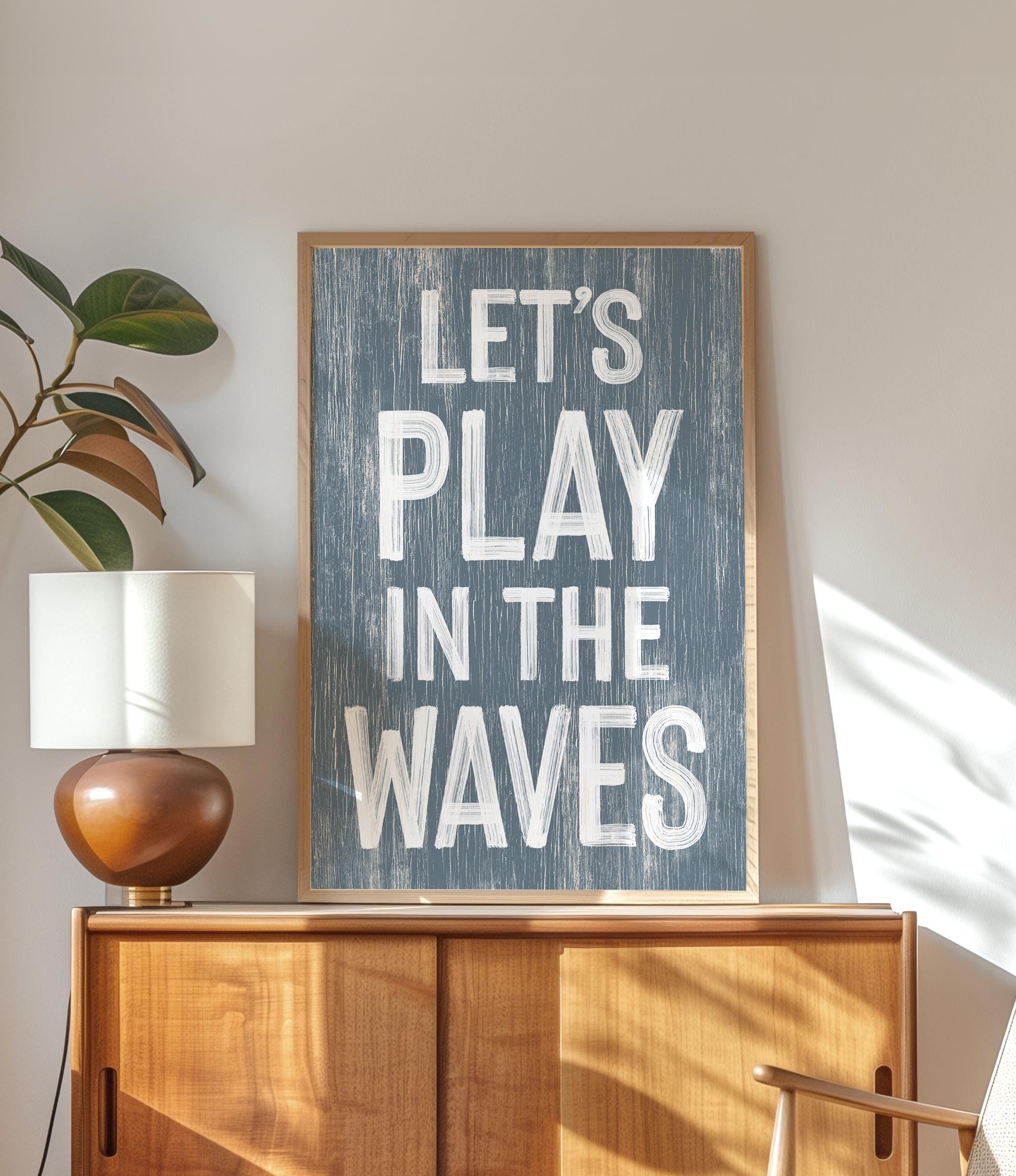 Let's Play in the Waves Sign | Vintage Beach Wall Art