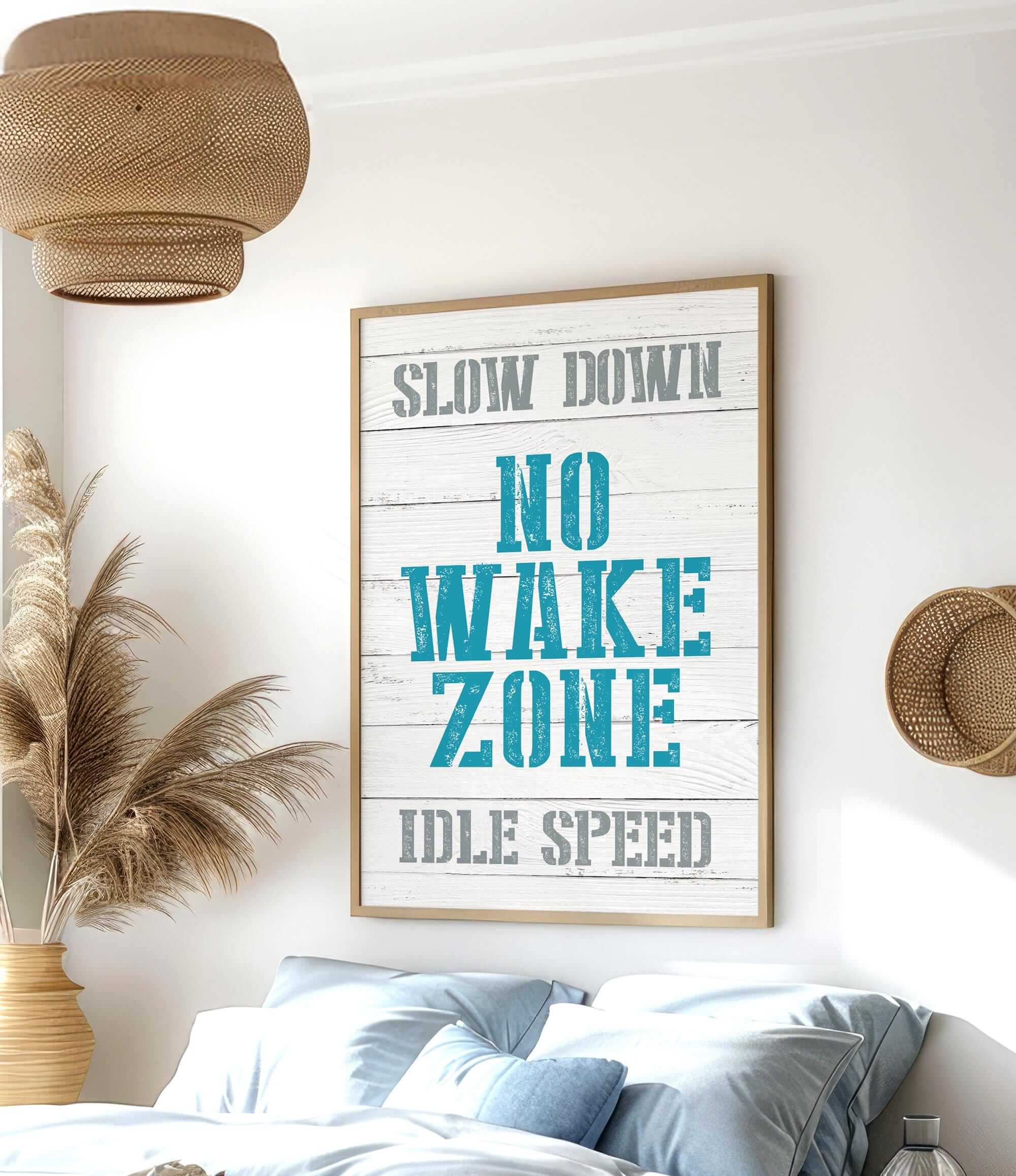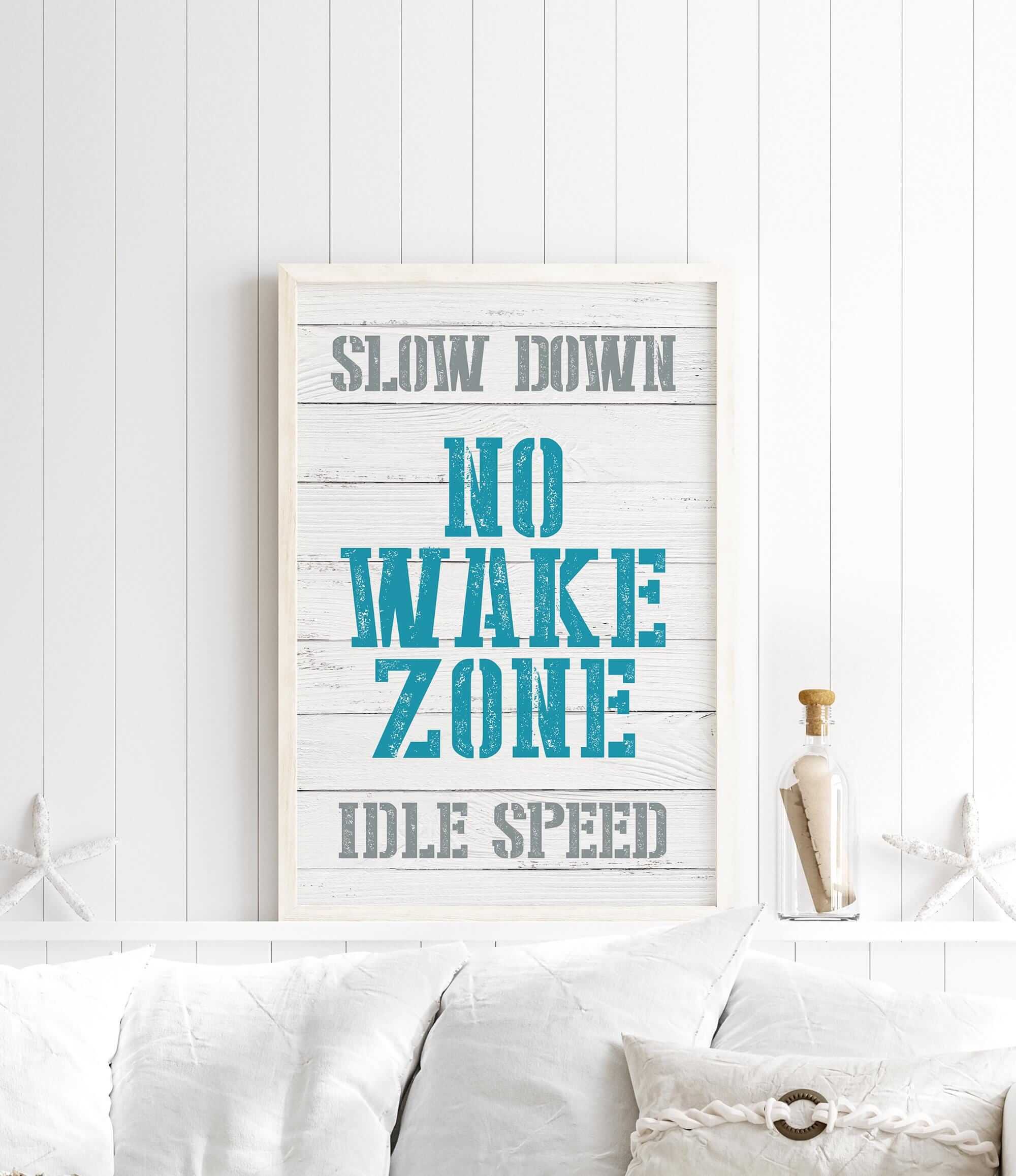 This no wake zone sign is a piece of vintage-inspired coastal art designed to enhance your lake house decor. Crafted as a distressed shiplap decor piece, this retro-inspired decor is perfect for those who appreciate nautical wall art and modern farmhouse style.